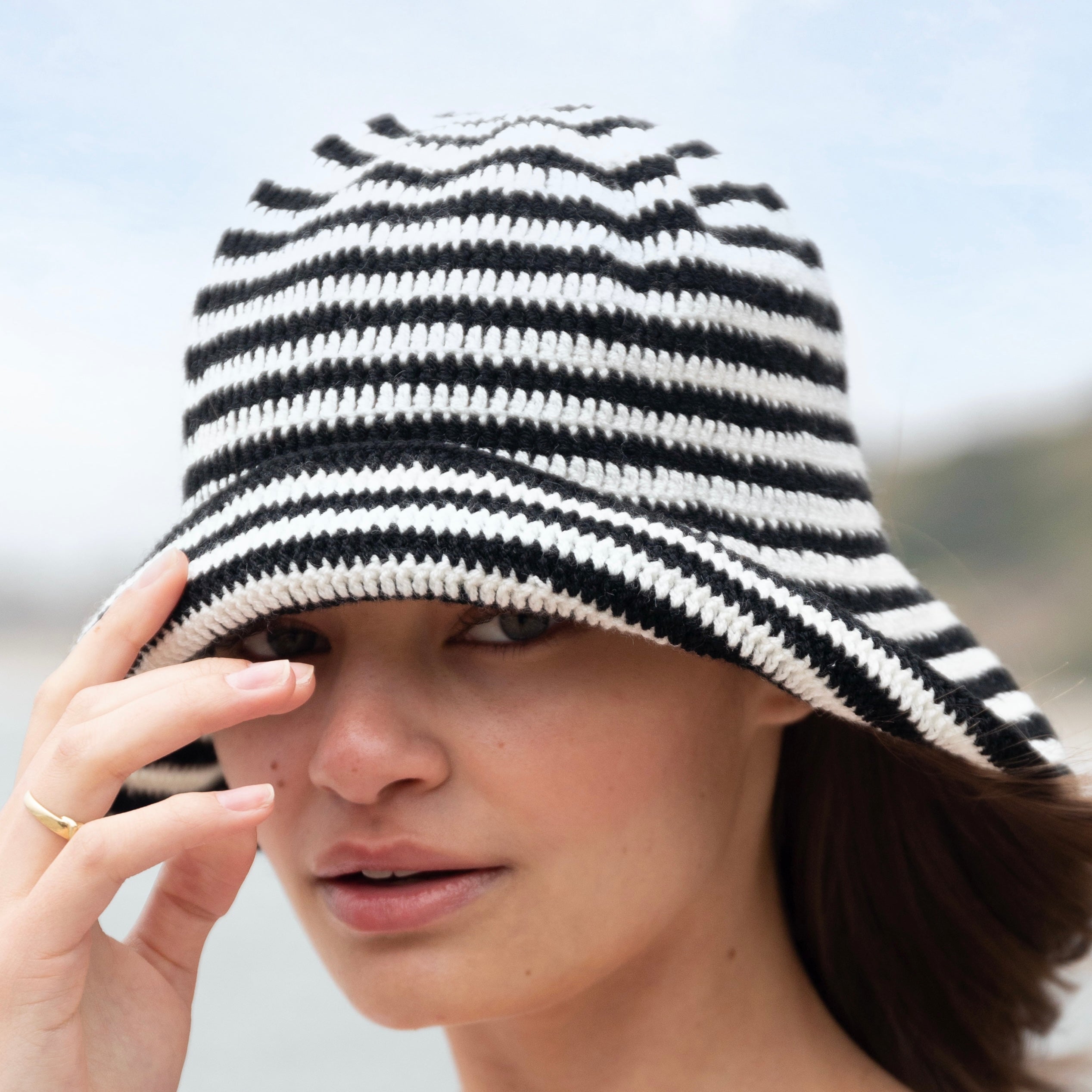 Black And White Striped Crochet Bucket Hat Soraya Hennessy